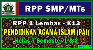 Download RPP 1 Lembar Pendidikan Agama Islam (PAI) SMP Kelas 7 Semester 1 dan Semester 2 Kurikulum 2013 Revisi 2021/2022 - Pemerintah mulai memberlakukan perevisian besar-besaran, agar belajar mengajar berjalan dengan efektif dan efisien. Salah satunya untuk guru sendiri adalah dilakukannya penyederhanaan susunan RPP menjadi 1 lembar / 1 halaman.