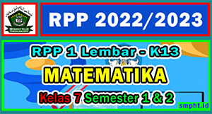 SMPHT.ID – RPP 1 Lembar MATEMATIKA Kelas 7 SMP/MTs Semester 1 dan 2 edisi terbaru tahun 2022/2023.