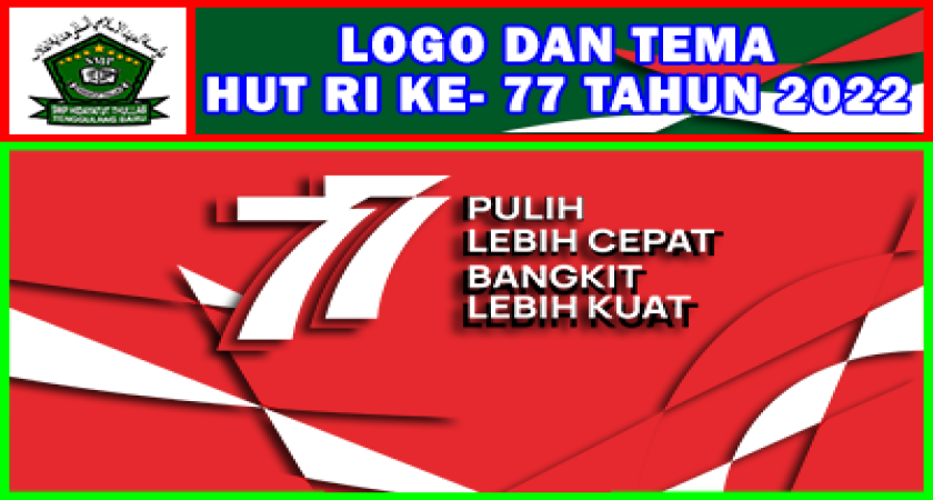 Tema peringatan HUT Ke-77 Kemerdekaan RI Tahun 2022 adalah Pulih Lebih Cepat, Bangkit Lebih Kuat. Tema dan logo dapat diunduh di akhir artikel ini.