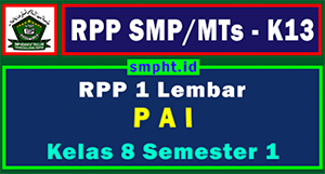 RPP 1 Lembar PAI Ganjil Kelas VIII Tahun 2021. Pada kesempatan kali ini smpht.id ingin memberikan informasi mengenai Penyusunan/Pembuatan Lengkap RPP 1 Halaman Berdasarkan Pertemuan dan Penilaian Tingkat SMP/MTs Mapel PAI dan Budi Pekerti Kelas 8 Semester 1 Kurikulum 2013 Revisi 2021. Untuk RPP 1 Lembar ini bisa ibu/bapak guru semua bisa anda download secara gratis dan lengkap.